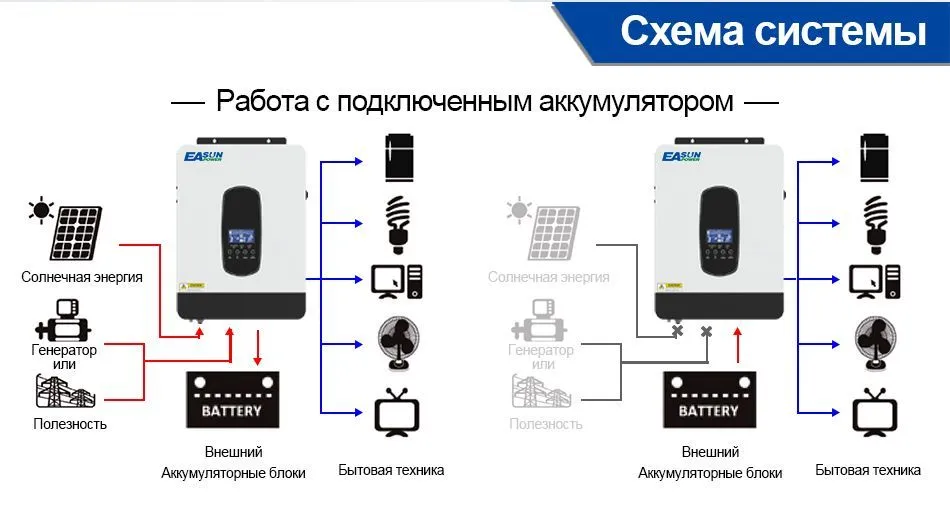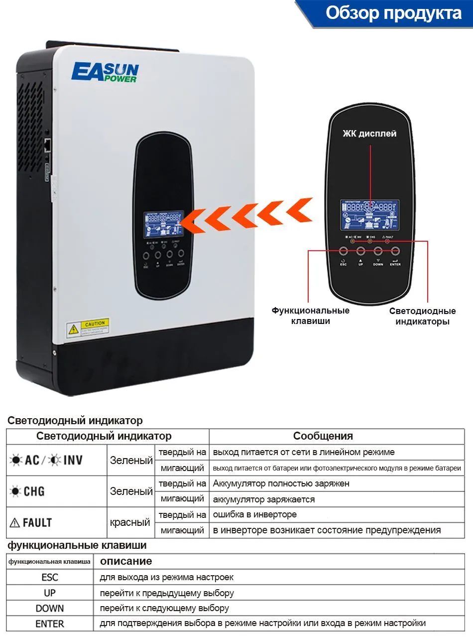 Гібридний інвертор EASUN POWER 7000VA(6200W) з модулем Wi-Fi 110A MPPT (безперебійник, UPS, ДБЖ)Немає в наявності
