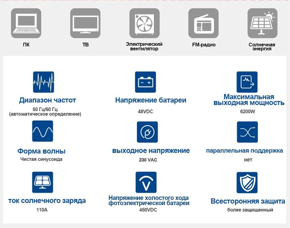 4) Настроюваний пріоритет змінного/сонячного зарядного пристрою за допомогою параметрів РК-дисплея.